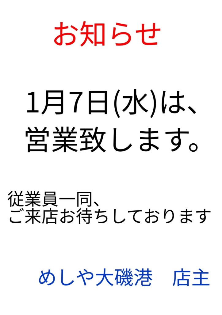 21月7日(火)より新年の営業を開始いたします。